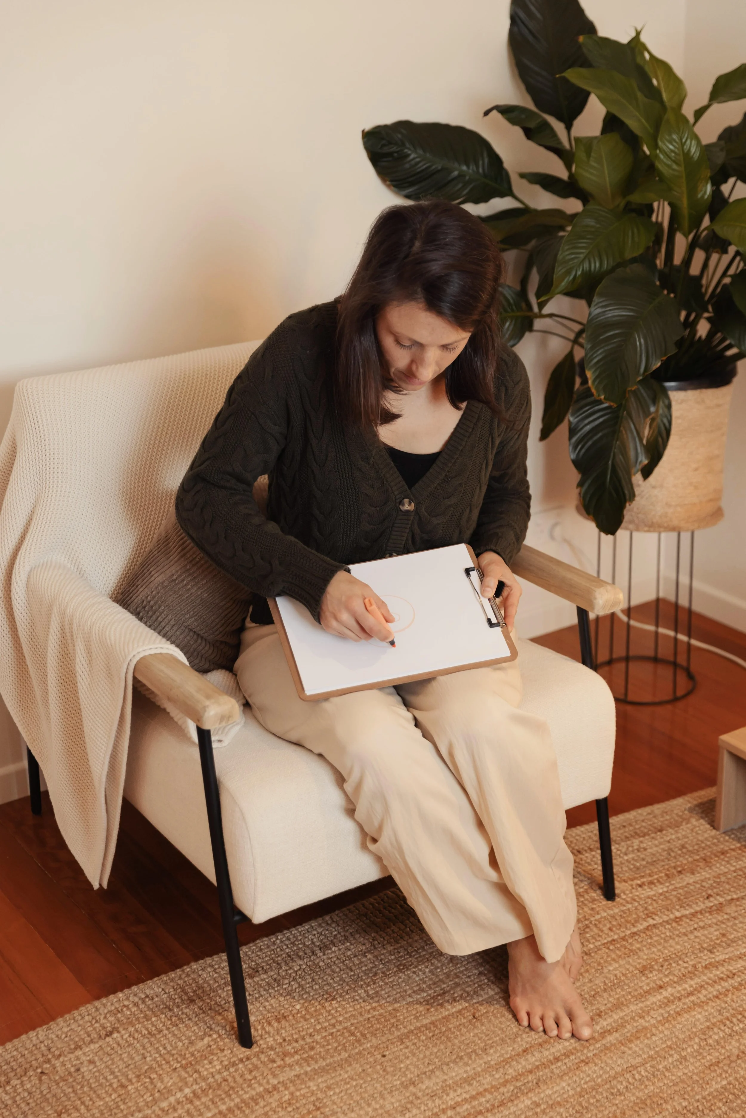 Together, we begin building an embodied understanding of how your nervous system responds to stress, connection, nourishment, and rest. Using conversation, reflection, and creative mapping (words, imagery, or simple drawing), we make visible the patterns your body has developed to protect you.